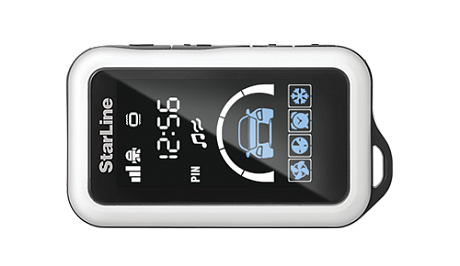 Управление охраной автомобиля штатным брелком с надежной дополнительной диалоговой авторизацией любым из двух брелков StarLine (при подключении по цифровым шинам или аналоговым цепям)